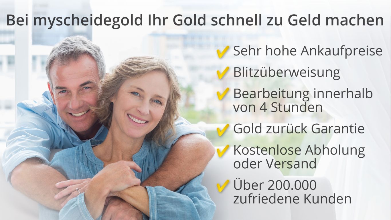 Gold-Ankauf online ist Vertrauenssache. Sie wollen Ihr Altgold sicher, ohne großen Aufwand und schnell verkaufen. Sie möchten kleine Mengen an Silber oder Platin abgeben oder größere Mengen an Edelmetallen aus Industrieabfällen. Für alle Formen des Online-Gold- und Edelmetall-Ankaufs bietet myscheidegold in Zusammenarbeit mit einer Partner Scheideanstalt die besten Voraussetzungen und sichert Ihnen hohe Ankaufpreise.